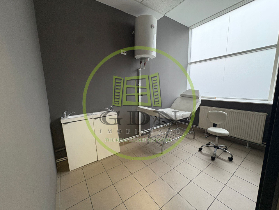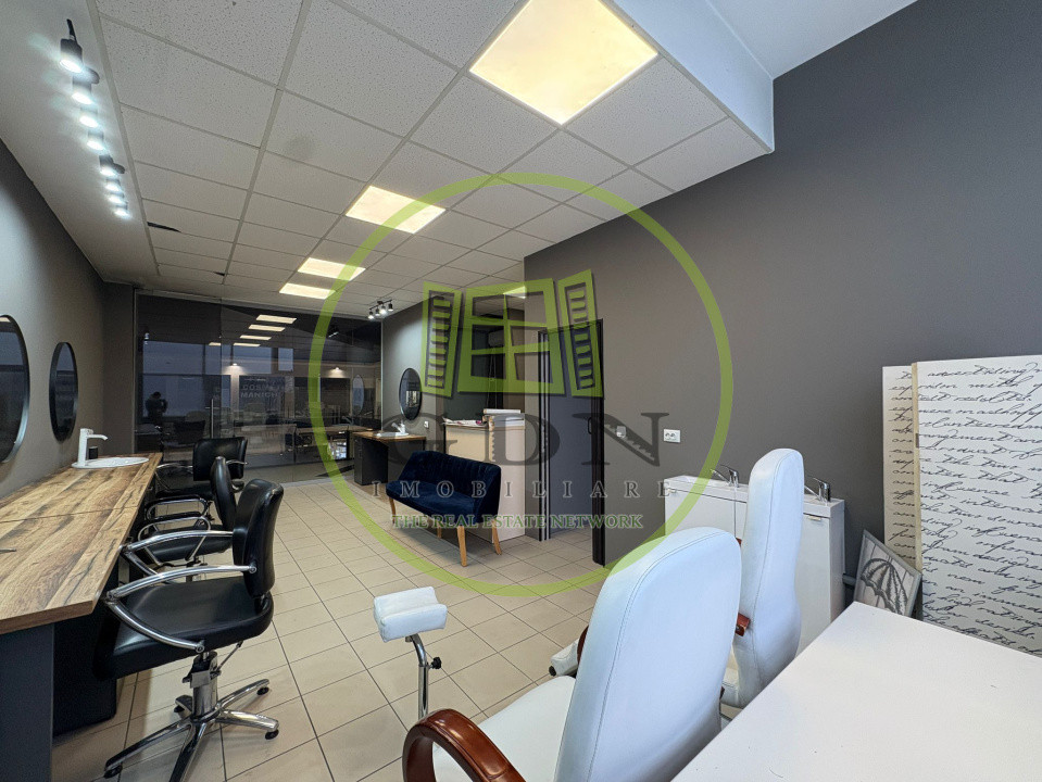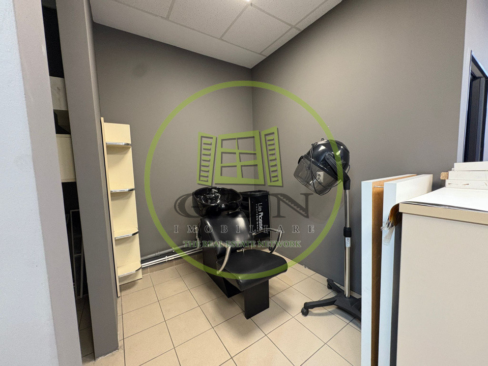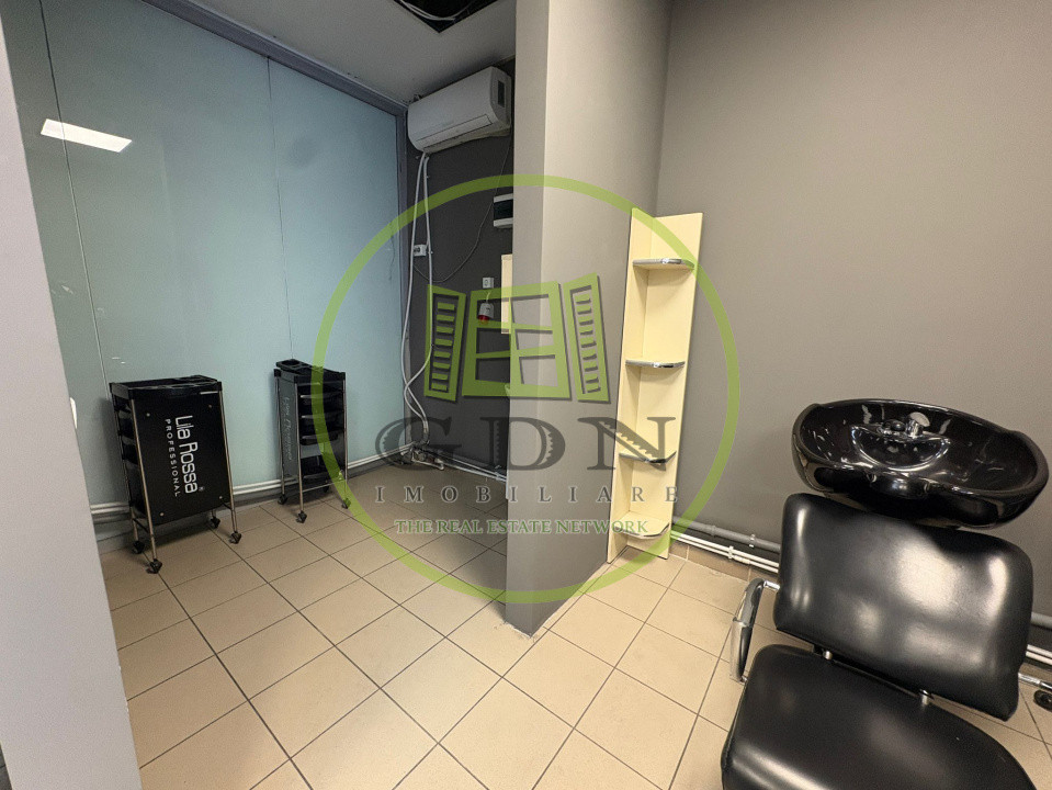 GDN Elite Imobiliare vă propune spre închiriere un salon de înfrumusețare, cu o suprafață utilă de 50 mp, situat într-un centru comercial din cartierul Craiovița Nouă, zonă cu trafic și vizibilitate bună. Spațiul este compartimentat în 4 încăperi, optim organizate pentru desfășurarea activităților din domeniul beauty. Salonul este complet utilat și funcțional, fiind dotat cu 3 posturi de frizerie/coafor, scaun cu scafă pentru spălat, zonă separată pentru epilat/cosmetică, spațiu de lucru/manichiură-pedichiură, precum și zone de depozitare. Dispune de aer condiționat, iar încălzirea se realizează prin termoficare.