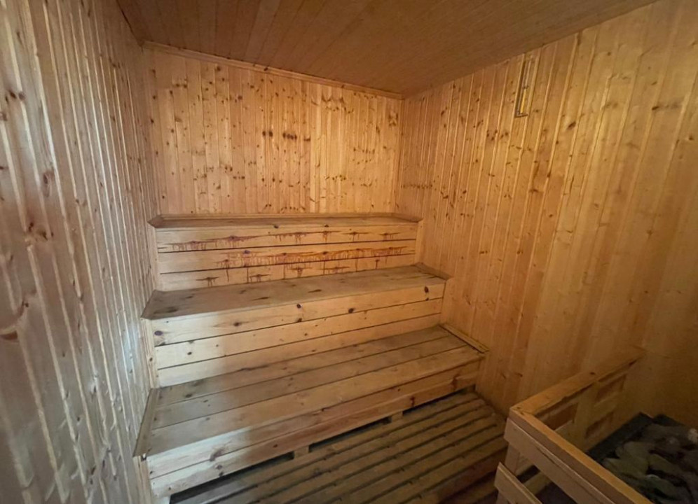Parter: două vestiare cu săli pentru dușuri, grup sanitar, cameră tehnică, saună, salină și un bar.