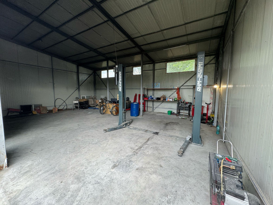 Spațiul principal are o înălțime maxima de 4 m la streașină și 5 m la coamă, cu doua cai de acces de 3.5 m inaltime. Proprietatea se accesează foarte ușor, direct din strada principala, și beneficiază de următoarele utilități: apă, curent trifazic, si canalizare care este racordata dar momentan nu a fost pusa in functiune.