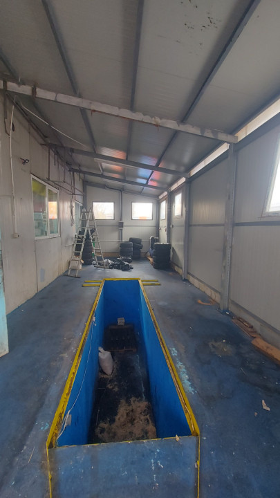 🚗 Prima hală dispune de canal de lucru, cu posibilitate de montaj pentru stand de jocuri sistem direcție și sistem de frânare, obligatorie pentru operațiuni la sistemele de frânare și direcție (alternativ, există stație ITP în apropiere pentrh efectuarea probelor).