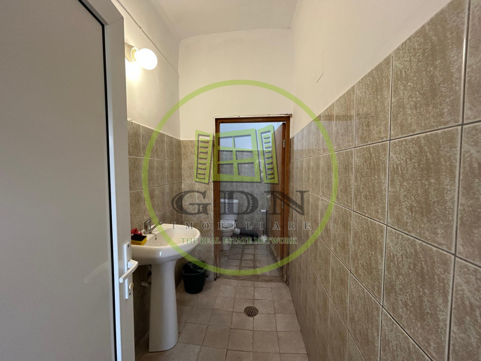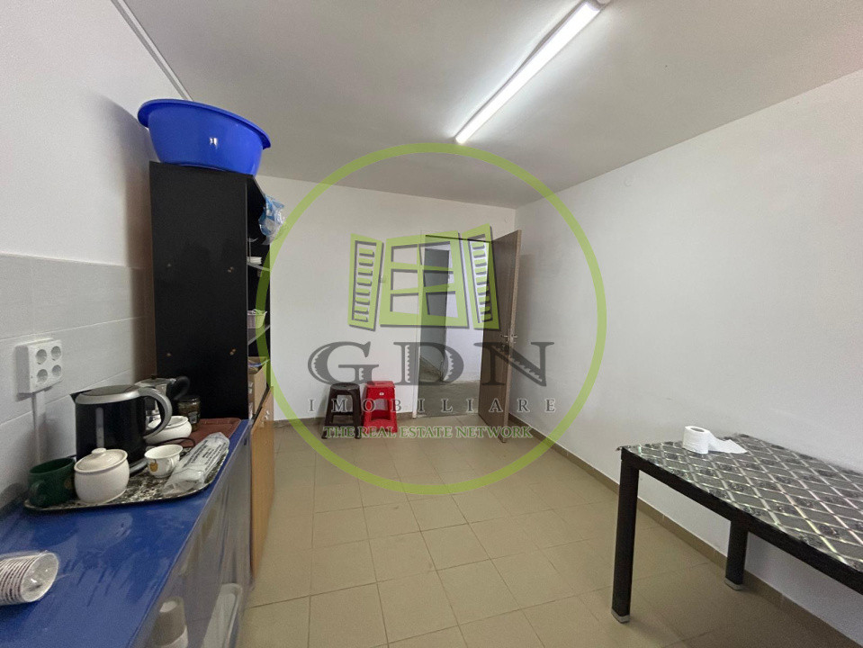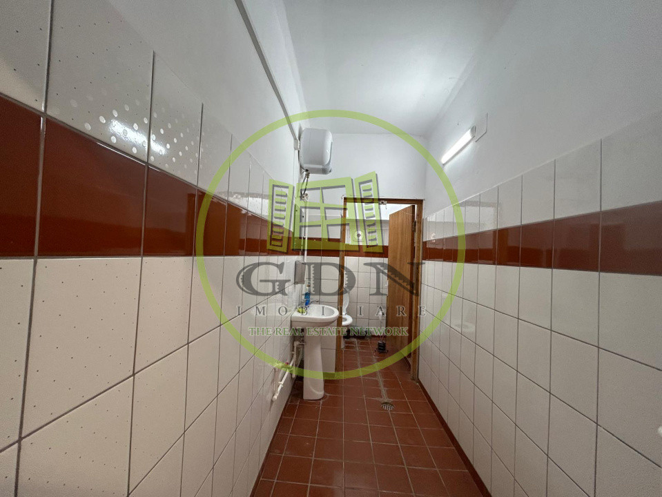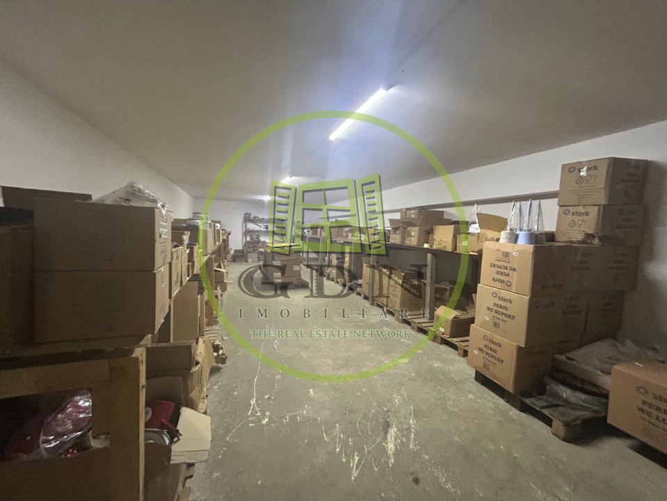 Hala dispune de un acoperis realizat din chesoane, beton, si beneficiaza de urmatoarea compartimentare: o incapere foarte generoasa , prevazuta ca spatiu de lucru, urmata de 8 birourisi 4 bai.In curte de mai afla o alta hala mai mica, in suprafata utila de 200 mp, care se va vinde impreuna cu terenul si cealalta hala.