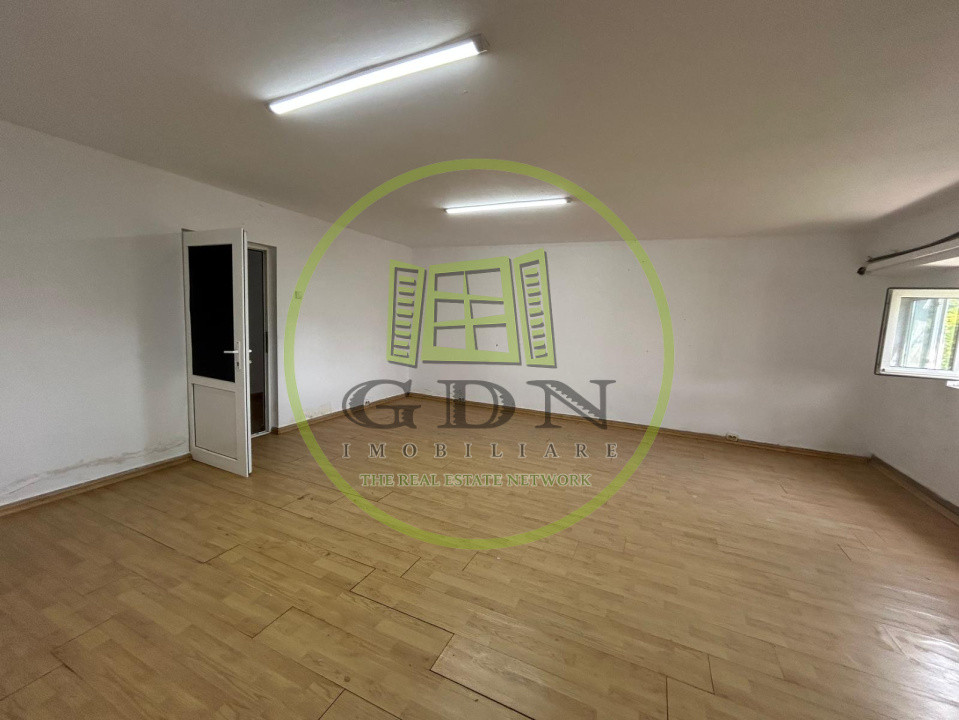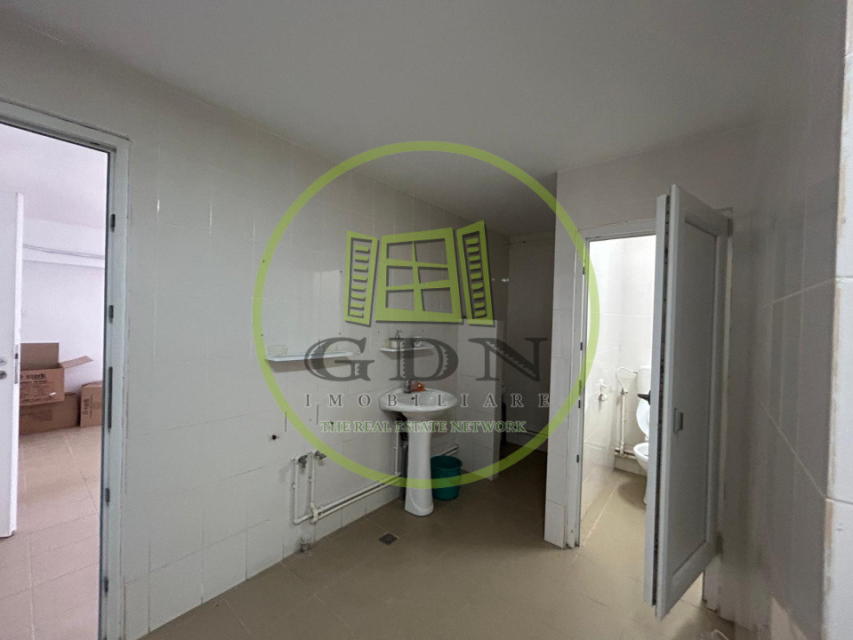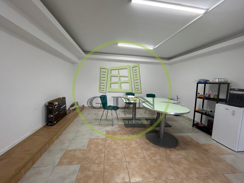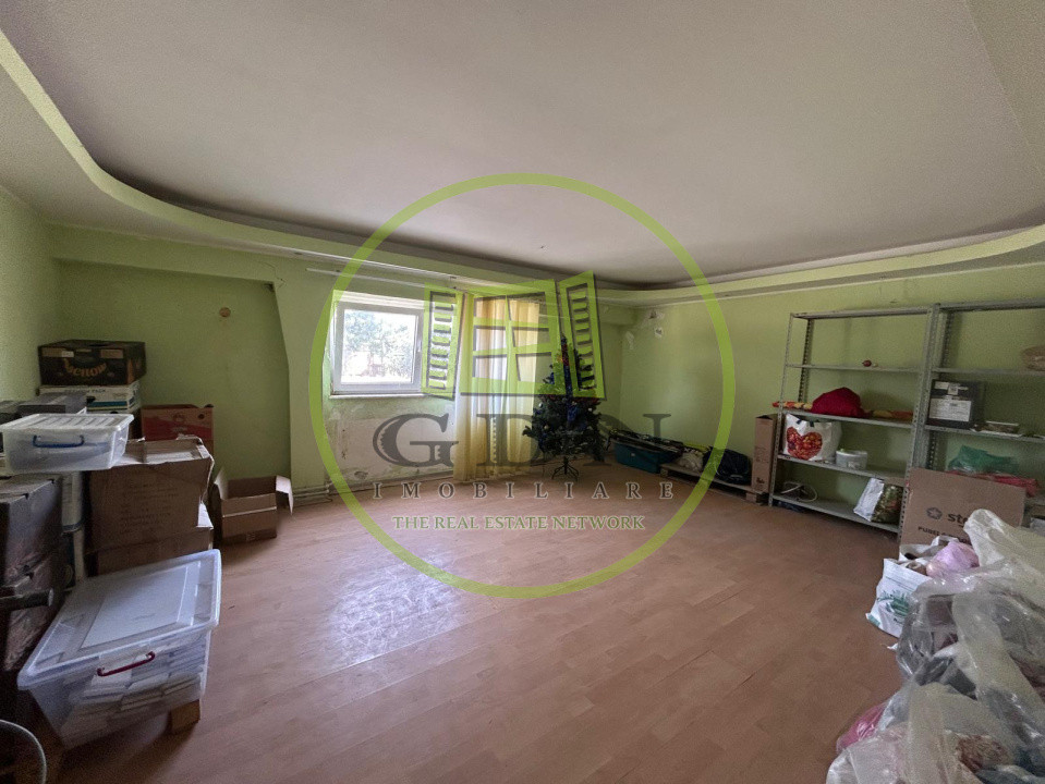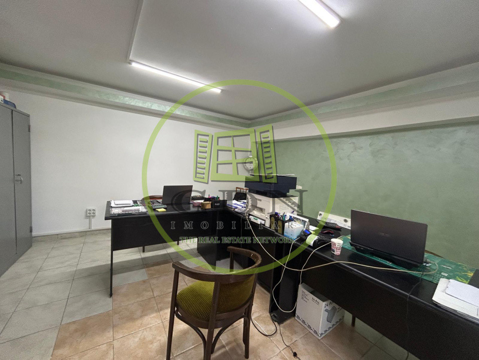 Hala dispune de un acoperis realizat din chesoane, beton, si beneficiaza de urmatoarea compartimentare: o incapere foarte generoasa , prevazuta ca spatiu de lucru, urmata de 8 birourisi 4 bai.In curte de mai afla o alta hala mai mica, in suprafata utila de 200 mp, care se va vinde impreuna cu terenul si cealalta hala.