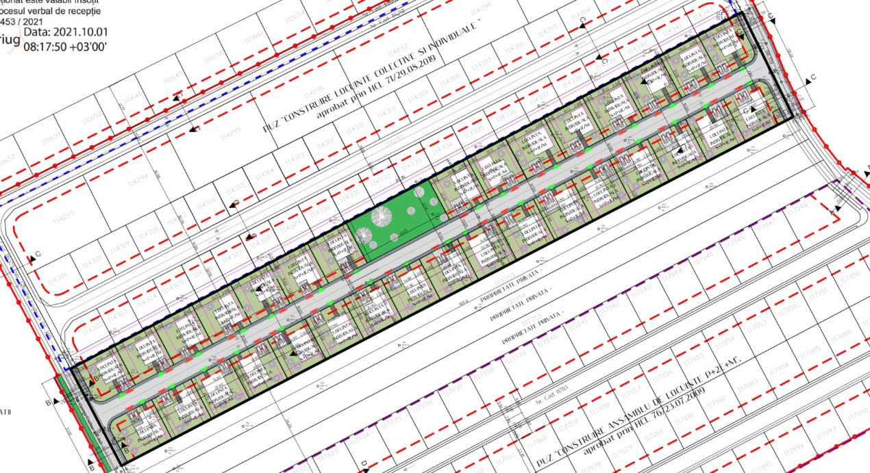 Suprafata teren: 20100mp. 32 de parcele + 1 zona de parc/spatiu verde